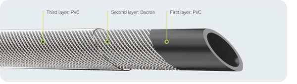 The PVC high-pressure spray hose is able to withstand high pressures and can transfer liquids stably.